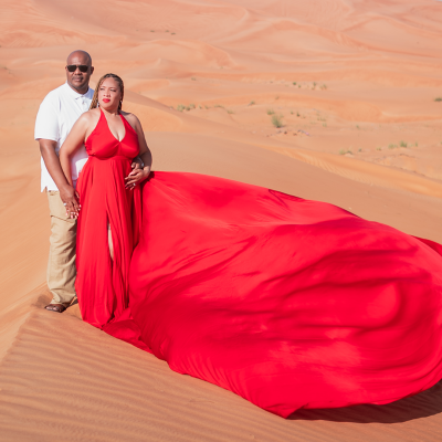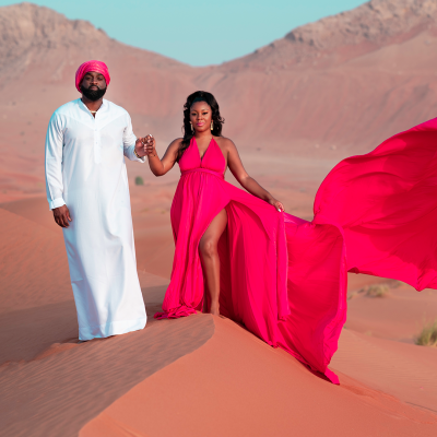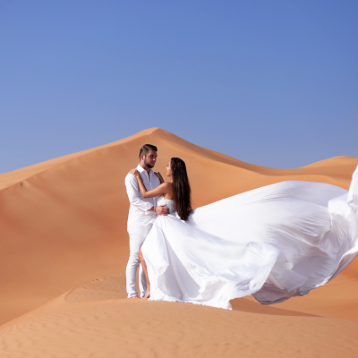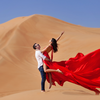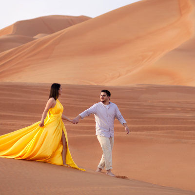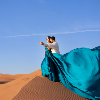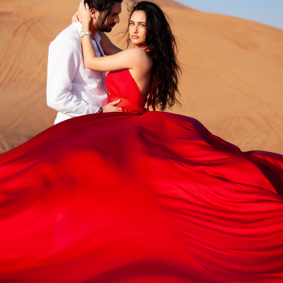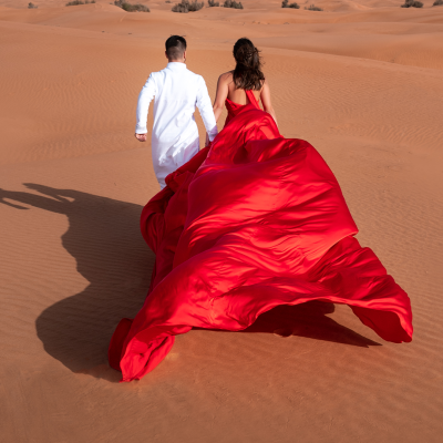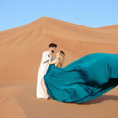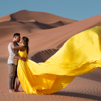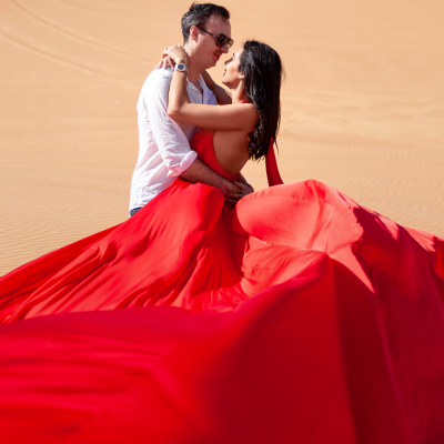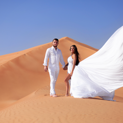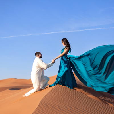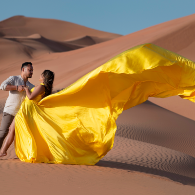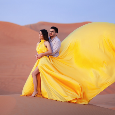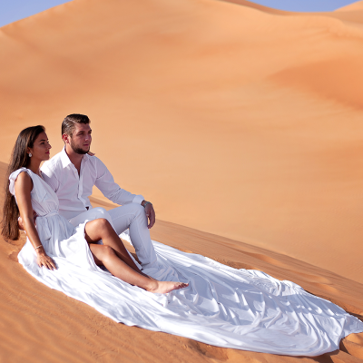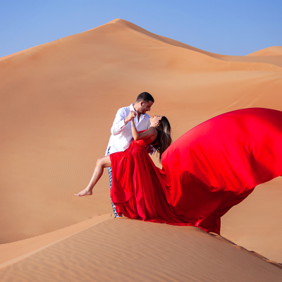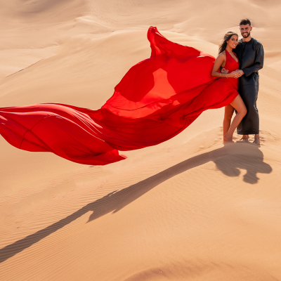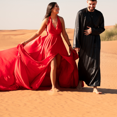 Extra location: This option allows you to do the photoshoot at the most famous places in Dubai: the desert and Downtown with a view of the Burj Khalifa tower. The photoshoot time will be shared between these two places, 30 to 40 minutes each, the transportation between the two locations will be shared with your photographer